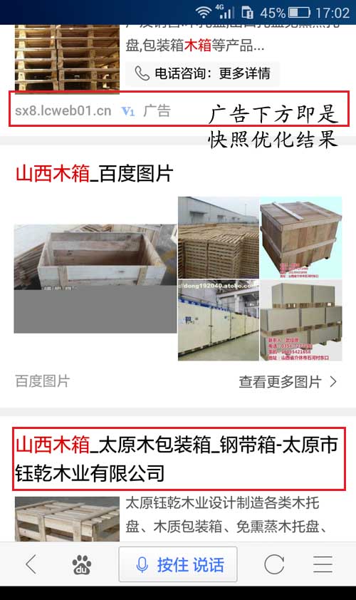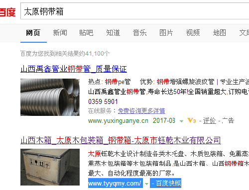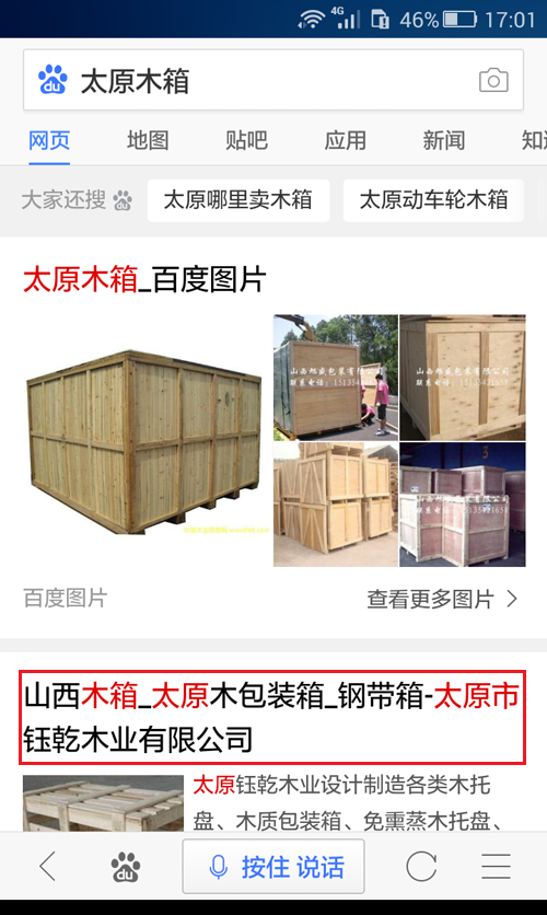 具体拿一个案例做介绍,百度搜一下“太原钢带箱” ”太原木箱“